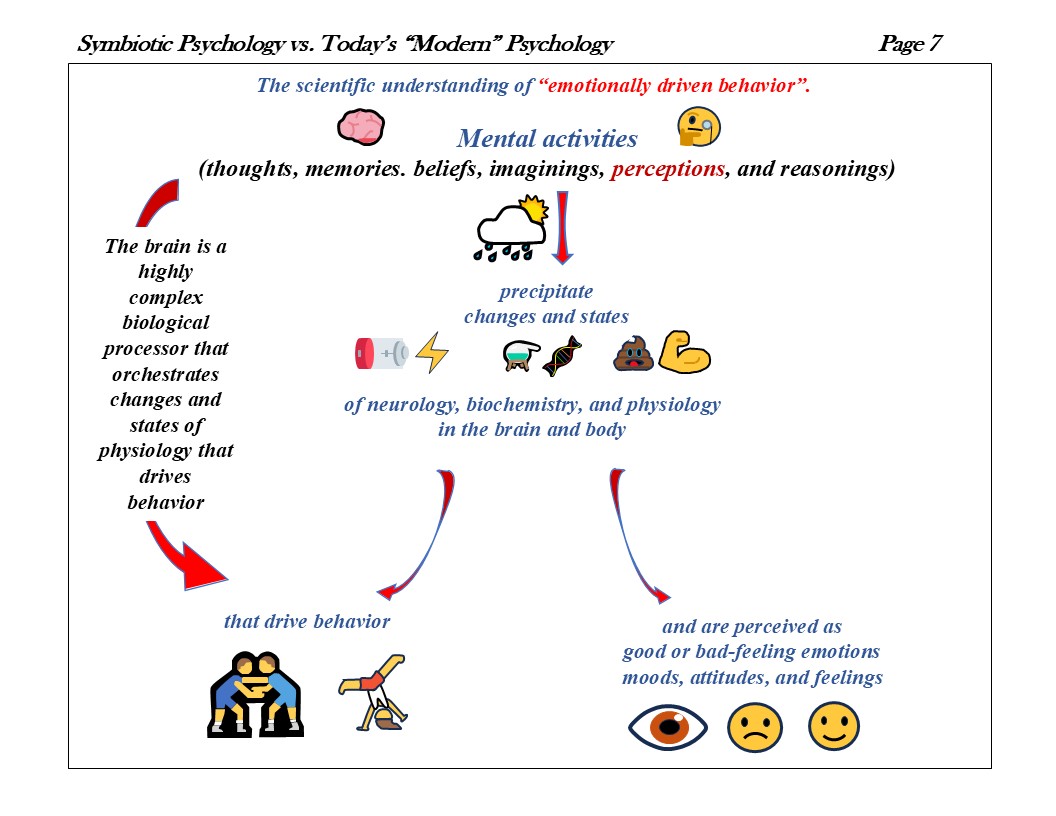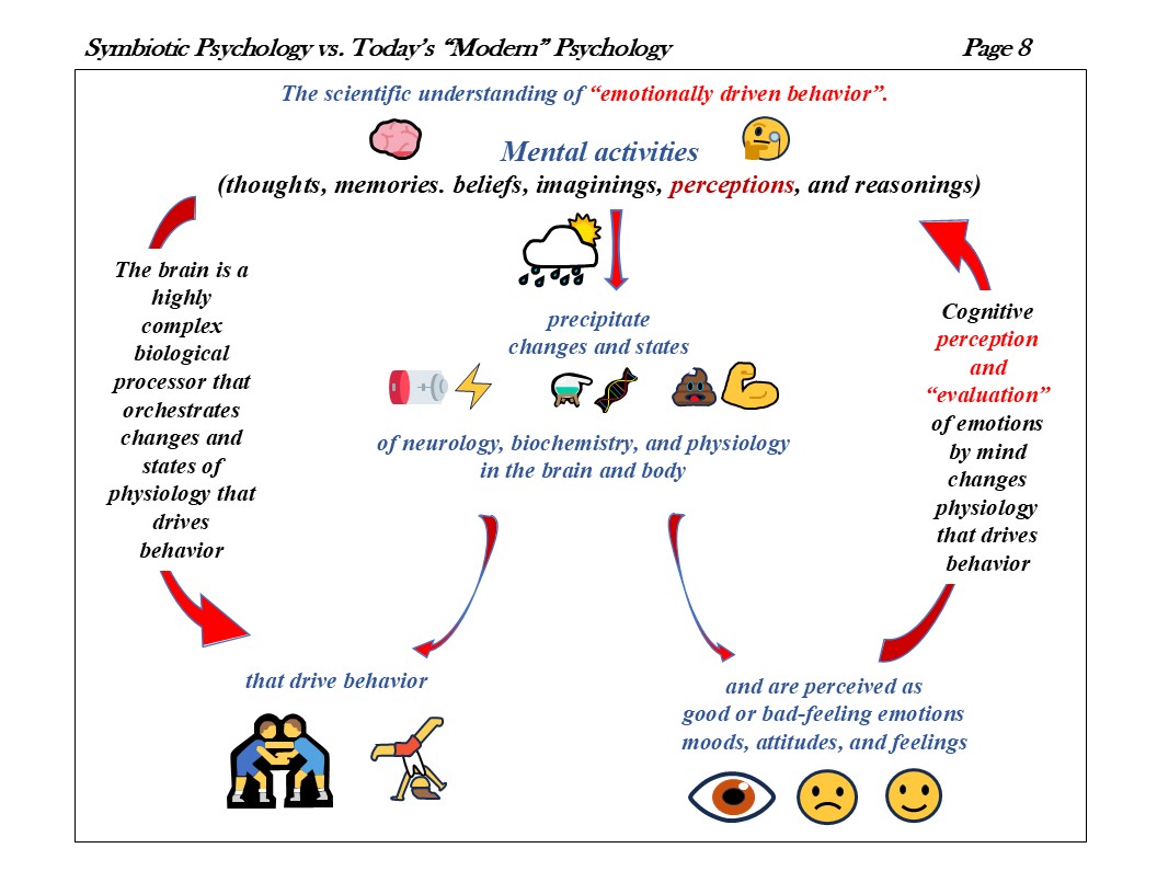But cognition, not emotion, precipitates the good or bad feeling physiology in the brain and body that drives behavior. Emotion is not causal to these changes and states of neurological, biochemical, and physiological being in the brain and body, cognition is! Cognition is causal and emotion is a perceived effect. Cognition precipitates the physiology that drives destructive behavior and is perceived as emotion. And it is these dangerous cognitive activities of the mind that are being controlled, regulated, and managed by scientifically proven, well researched, documented, and published evidence-based cognitive behavior modification therapies that utilize good or bad feeling emotional awareness to evaluate their effectiveness.