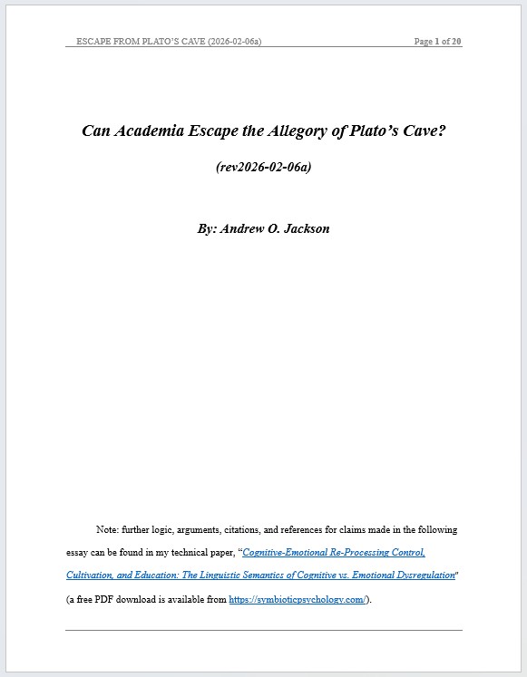 Reference: Jackson, A.O. (2026). (Technical Paper with Supplements.) Cognitive-Emotional Re-Processing Control, Cultivation, and Education: The Linguistic Semantics of Cognitive vs. Emotional Dysregulation. Symbiotic Psychology Press. (15,500-word paper, free PDF download, new tab)