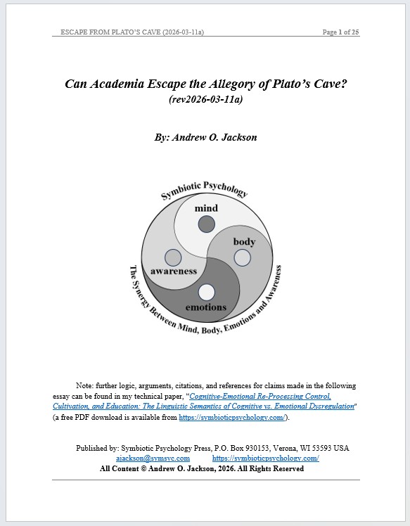 (Reference: Jackson, A.O. (2026). (Technical Paper with Supplements.) Cognitive-Emotional Re-Processing Control, Cultivation, and Education: The Linguistic Semantics of Cognitive vs. Emotional Dysregulation. Symbiotic Psychology Press. (15,500-word paper, free PDF download, new tab)