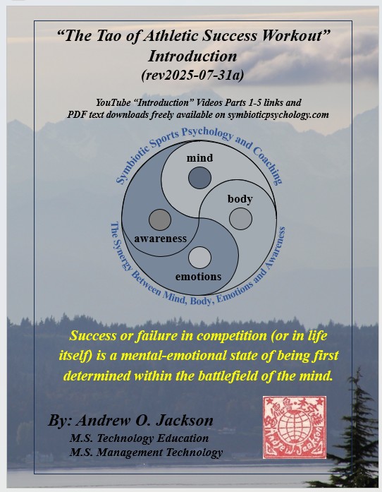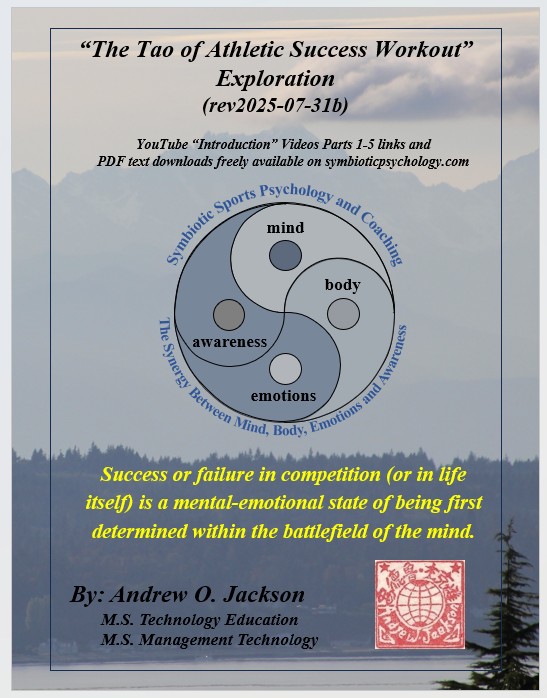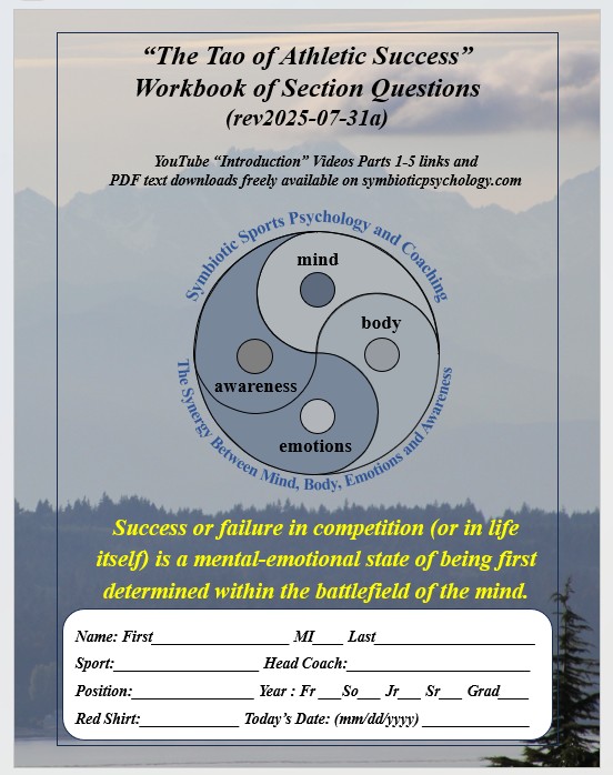 “The Tao of Athletic Success Workout” (immediately below) is a new sports performance psychology based on millions of years of evolutionary survival of the fittest, strongest, most agile and most powerful and clever and their evolved symbiotic harmony of mind, body, emotions, and awareness within a personal power of Qi. “The Tao of Athletic Success Workout” is a freely available self-directed 10-hour program with “Introduction” Videos for hours 1-5 available on YouTube. Hours 6-10 are a freely available instructional, fill-in-the-blank “Exploration” text that further develops an athlete’s skills, abilities, and understandings of their “Quantum Being” nature beyond their Newtonian linear time and 3D spacial awareness, strengths, and power.