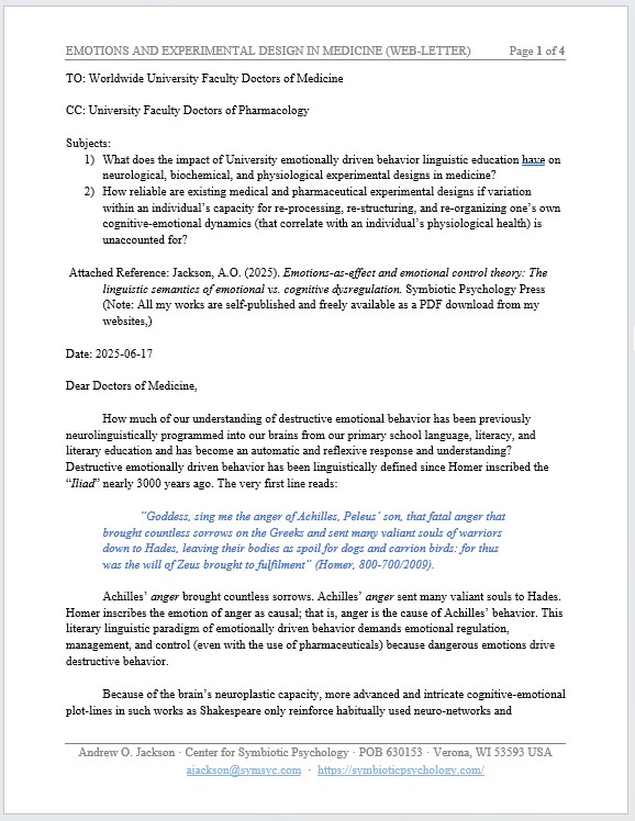 Current academic psychology and sports psychology is an erroneous adaptation of Homer’s 3000-year-old linguistics of emotional driven behavior where cognitive behavior modification therapies (and pharmaceuticals) are used to control aberrant, dangerous, and dysfunctional emotional behavior because emotions are [incorrectly] deemed causal to driving destructive behavior. In other words, academia inaccurately understands depression as a mood disorder.